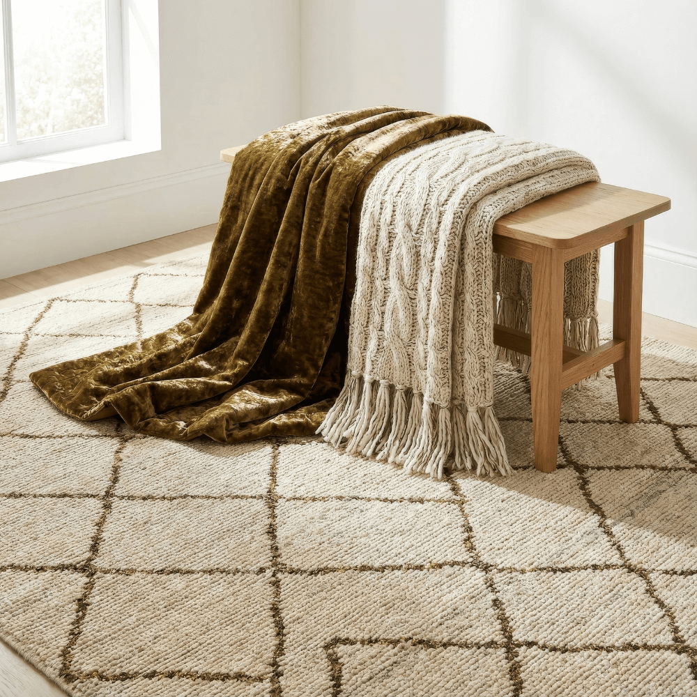 Versatile Shape: The 60x120cm oval silhouette is designed to fit narrow spaces, hallways, or act as a throw for armchairs and sofas.